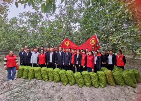 随后,全体党员与驻村工作队一起,深入田间地头帮助三小组的村民艾力·热合曼开展助农秋收工作。活动中,大家干劲十足,党员志愿者和村民们弯着腰、低着头,捡地上的核桃,将核桃装入桶中,在倒入包装袋中……分工协作、齐心协力,一派热火朝天的繁忙景象。经过近两个多小时的劳动,圆满完成了收核桃的任务,为村民送去了党组织的关怀和温暖。