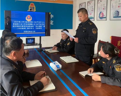 10月8日,尼勒克执法大队党支部组织开展了关于深入学习贯彻《习近平关于工人阶级和工会工作论述摘编》及“习近平总书记给中国航发黎明发动机装配“李志强班”职工回信精神”研讨交流活动。会议采取线上线下相结合的方式进行,尼勒克执法大队党支部书记主持,全体党员干部职工参加。