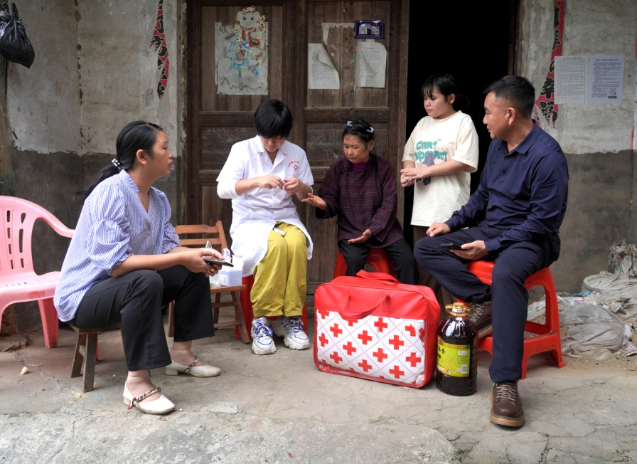 在翠里乡高华村,民进从江县支部的专家们主动上门服务,为行动不便的高血压高血糖患者送医送药,面对面开展健康知识咨询,让他们零距离享受到专家级别的优质医疗服务。本次活动送药,送慰问品折合人民币5000余元,活动的开展深受当地群众的好评。(从江县委统战部民进支部:潘智英)