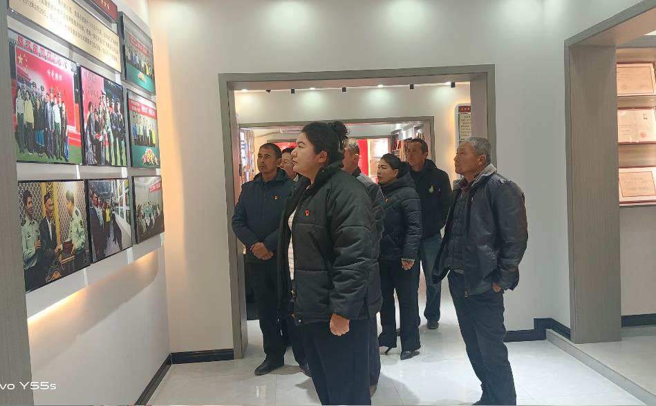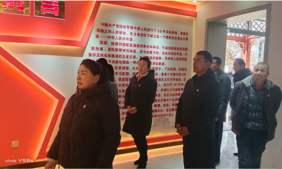 温宿县吐木秀克兰杆村国旗教育展馆,曲达村党支部一行参观了讲解及观看大量历史图片、文献记载及文物,细细观看展馆陈列的大量珍贵文字、图片和实物,重温了党的伟大发展历程,尤其是深入了解了胡达拜地·依明28年如一日坚持升国旗的先进事迹,对那段历史有了更加深刻的认识,认识到必须永远高举爱国主义旗帜,发扬伟大的爱国主义精神,学习胡达拜地·依明28年如一日坚持升国旗,以这份执着之举表达着对祖国母亲的赤诚热爱。随后,曲达村驻村第一书记杨异率领全体村委会党员干部和农牧民党员、工作队党员在鲜红的党旗下重温了入党誓词。