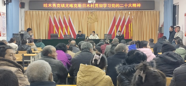 尤喀克斯日木村党支部通过三会一课、政治理论学习等多种形式扎实开展了党的二十大精神的学习。尤喀克斯日木村还利用入户走访、小组会议等方式开展工作,为我村村民、学生开展了党的二十大精神宣讲活动。通过学习宣传,全体党员干部表示要从中汲取前进的智慧和力量,一如既往发挥共产党员的先锋模范作用,凝聚起奋进新征程的强大力量,以实际的工作行动和成效贯彻党的二十大精神。