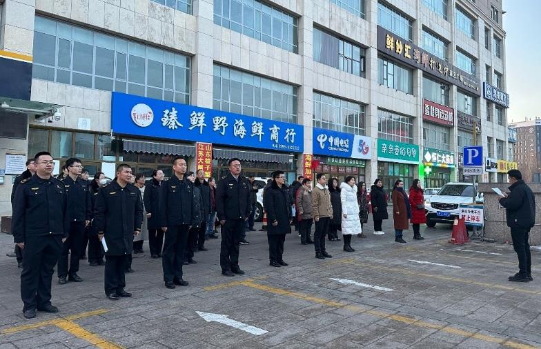 为深入学习宣传贯彻习近平总书记关于加强和改进民族工作的重要思想、加强铸牢中华民族共同体意识宣传教育,1月15日,伊犁执法支队与所在泰和社区共同举行升国旗仪式,支队机关全体干部及部分退休干部、所在社区干部和居民参加升旗仪式。