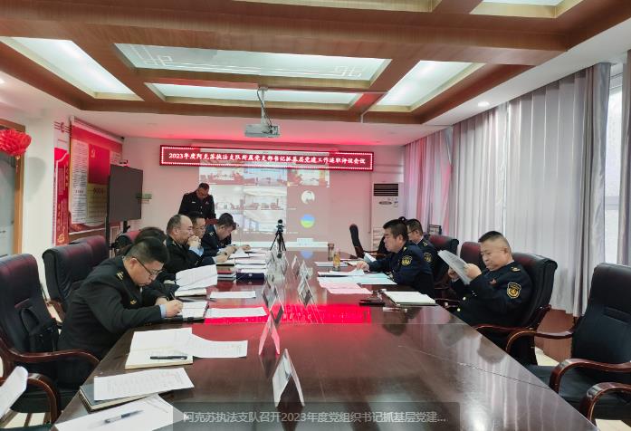 近日,自治区交通运输综合行政执法局阿克苏执法支队举行2023年度党组织书记抓基层党建工作述职评议考核会,支队党委书记、副支队长主持。