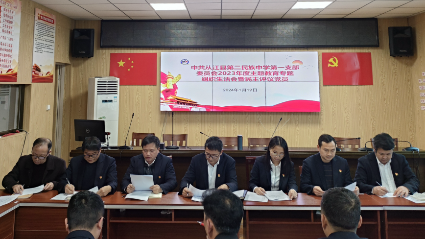 按照中共从江县教育工作委员会关于《召开2023年度基层党组织组织生活会和开展民主评议党员的通知》,从江县第二民族中学第一党支部及时进行安排部署。于2024年1月21日上午在学校党员活动室召开2023年度第一支部党组织生活会、民主评议党员、支部书记述职述廉支部主题党日活动,支部书记高秀黔主持会议,全体在职党员同志参加了会议。