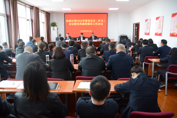 3月13日下午,安装公司召开党总支(扩大)会议,公司党支部书记、董事长鲁杰同志作了《聚焦主责强化作为 深耕主业提质增效 凝心聚力推动公司高质量发展取得新成效》的报告。会议全面总结2023年安装公司党总支重点工作完成情况,安排部署2024年工作。公司领导班子成员、中层和全体党员、本部全体职工53人参加会议。