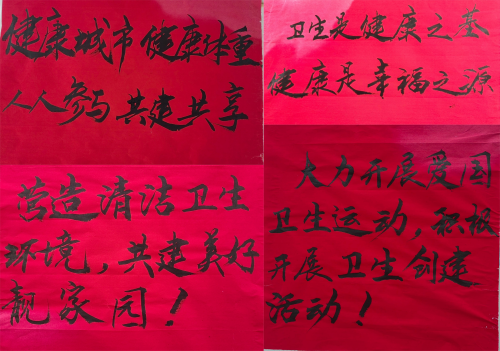 张贴宣传标语,营造浓厚氛围。简洁明了、富有感染力的宣传标语,传递了浓浓的健康正能量,坚定了学生保持健康体重的信心。这不仅能教育引导学生采取正确的卫生行为,提醒学生注意日常生活中的细节,养成健康的生活习惯,还可以通过“小手拉大手”的方式,推进“以师生带动家庭,以学校带动社会”的宣传方式创新爱卫月专项行动,提高全社会对爱卫月的关注度,形成“爱国卫生人人参与,健康生活人人享有”的良好氛围。