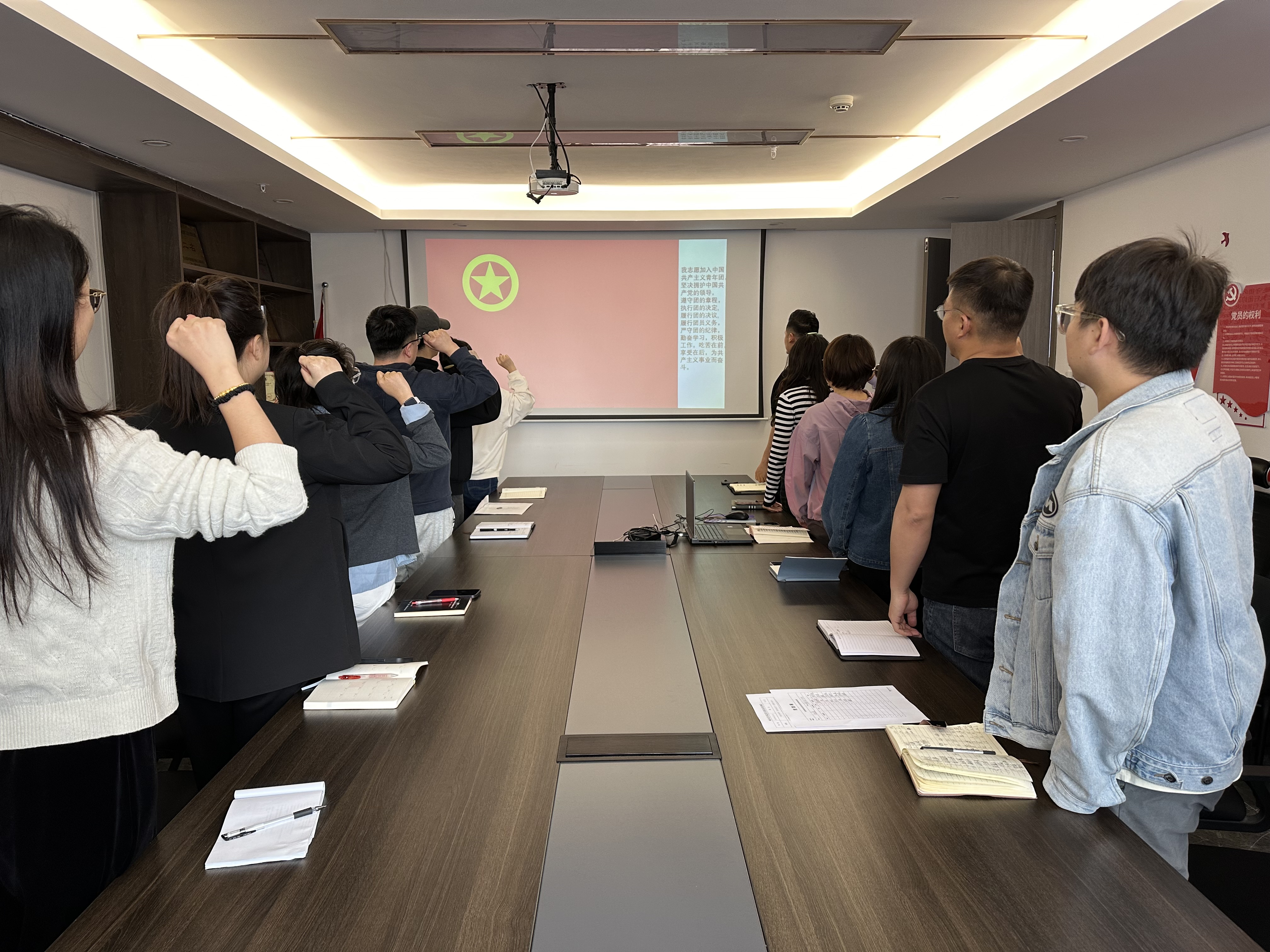 活动中,团员青年们集中学习了习近平总书记论青年工作重要讲话精神,通过PPT了解了五四精神的含义、具体内容及重要意义,回顾了五四运动的历史背景和深远影响。通过学习,团员青年们更加深刻地认识到五四精神在新时代的重要性和现实意义,激发了他们爱国热情,增强了自身责任感和使命感。随后,在团支部书记的带领下,全体团员在庄严的团旗下重温入团誓词,抒发了他们为共产主义事业奋斗终身的决心和信念。