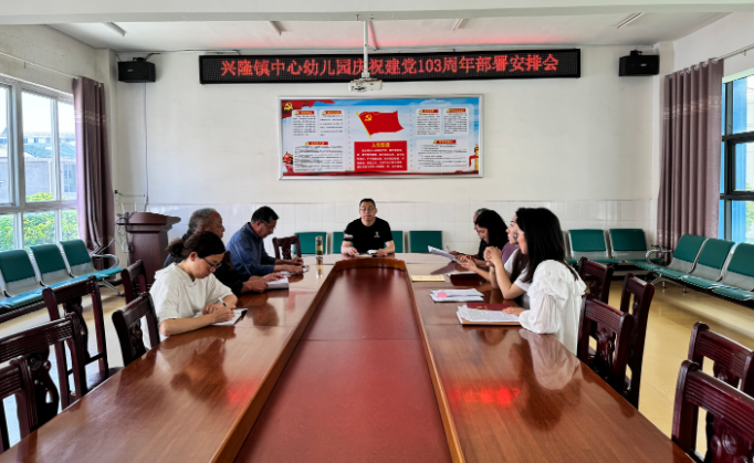 兴隆镇中心幼儿园正在紧锣密鼓地推进党建工作,以真抓实劲、敢抓狠劲、善抓巧劲、常抓韧劲,聚焦党建工作,全力谋发展,为建党103周年献上一份真挚的礼物。(通讯员:林剑、 张玲珠)