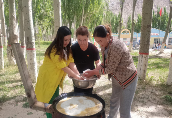 伴随着全村老年朋友和小朋友的人员到位,库尔干村“一老一小”活动正式开始。工作队队员与村“两委”一起摆桌子、做抓饭、切水果、上饭,宛如一家人,忙得不亦乐乎。