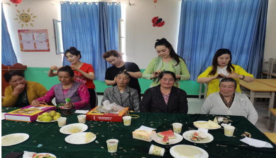 工作队精心准备鲜花、蛋糕,表达“福寿安康”的美好寓意。大家与老人们一起吃饭,品尝蛋糕,给他们表演节目,帮助会忆往事、叙家常,详细了解老年朋友的日常起居和身体状况,为老年人梳头理发,老年朋友激动不已,个个脸上洋溢着幸福的微笑。