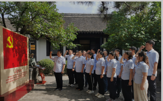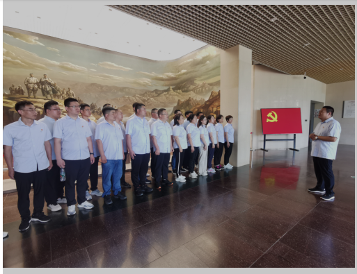 满怀着对革命先辈的崇敬之心和缅怀之情,大家踏上了这片革命热土。在一二九师司令部旧址,在党员们的见证下,刘喜良严肃、认真地为新党员李勋戴上党员徽章,并寄语新党员未来无论身处何地,都应该牢记胸前这枚党员徽章的坚强指引,行光明磊落之事,以努力和付出为党旗添辉增彩。“我志愿加入中国共产党,拥护党的纲领,遵守党的章程……随时准备为党和人民牺牲一切,永不叛党。”在刘伯承、邓小平同志亲手栽种的丁香树和紫荆树下,党员们身穿整齐的工装,胸前佩戴党员徽章,面向鲜红的党旗,整齐站立,高举右拳,庄重宣誓,重温了对党的铮铮誓词,更加牢记党员的使命和责任,永葆共产党员的政治本色。
