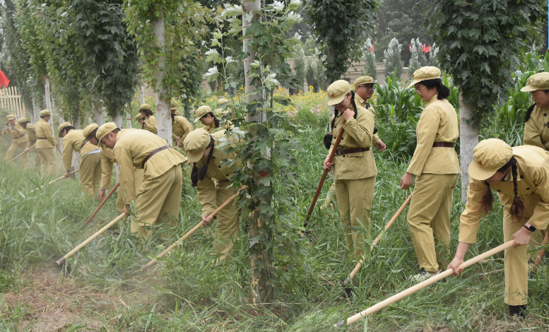 在十六团老一营红色教育基地,全体党员换上黄军装,站军姿、升国旗,热火朝天地开展了除草劳动,参加了趣味横生的军体训练,参观了仿苏式大礼堂、办公室,重温入党誓词。大家身临其境,仿佛又回到了那个热火朝天的年代。一件件记录了几代屯垦戍边人的老物件,重温着一个个满怀豪情的支边故事:知青们克服重重困难,面对一穷二白的大漠戈壁,献青春、洒热血,把自己的青春岁月奉献给了这片原本荒芜的土地,打造了如今“边疆处处赛江南”的崭新兵团。党员同志们被他们的故事深深感动,为自己是兵团人,继承和发扬兵团精神感到自豪和骄傲!活动的最后,一餐朴素但香甜的“忆苦思甜”饭带大家体验了过去的艰苦生活,更让大家再次体会到:享受现在美好生活的同时,要不忘历史,继续继承和发扬勤劳节约的精神。