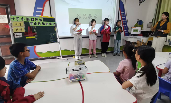 此次活动还注重课内与课外的延伸。张老师鼓励学生们在课后继续探索竹编艺术,将非遗文化的传承从校园延伸到家庭和社会,将制作的竹编作品送给环卫工人、父母和老师等,致敬劳动者和志愿者。通过这样的方式,非遗竹编不再是书本上冰冷的文字,而是成为学生们亲身参与、热爱并传承的文化瑰宝。