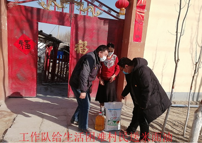 工作队成员坚持党员充当急先锋,“国有召、召必战、战必胜”的原则,组织党员为全村345户村民做防控疫情宣传,并了解村民生活困难。在走访中了解到村里有4户村民存在生活物质短缺的情况,工作队积极安排党员,第一时间将价值500余元的生活物质必需品送到这4户家庭中。