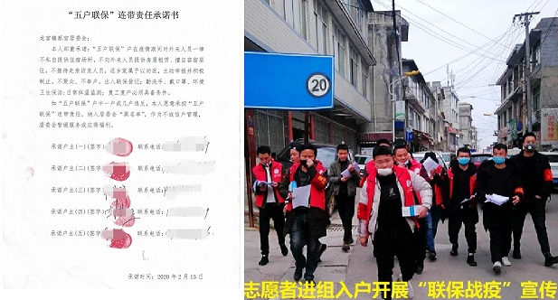 龙宫镇蔡官居委会位于安顺市西南面,距市区14公里,是安顺市通往龙宫、新场等乡镇的重要门户。为了复工复产和经济发展,各地逐渐取消防疫“关卡”后,交通的“松动”也给蔡官居委会的内防工作带来前所未有的压力,如一些欲出门购物和外出务工的居民,为了开具证明,群众每天都要涌到居委会办证。为遏制人员形成“打堆”办证和杜绝交叉感染疫情,支部书记刘海兵按照上级“拆卡不拆防、疫情防控退守村组”的工作指令,连夜走访和勾画出当地337户民房布局图,结合当地民房坐标,创新了一套“五户联保”工作法。即以5户居民或多户为一个管理单位,签订《连带责任书》和《担保责任书》,实行农户相互制约、亲属监督的联保制度。居委会还成立了40多名青年组成的疫情防控志愿者队伍,每人包保十户,每日向居委会疫情防控办公室报送各户居民体征和外出情况。