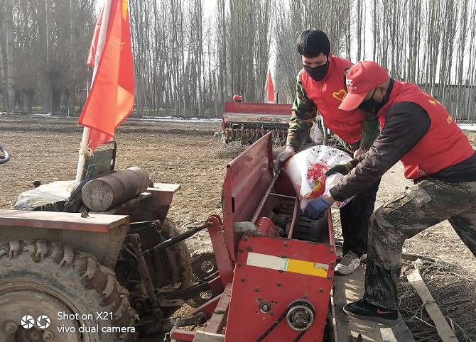 清风网讯(拜城县财政局:陈亮)“人误地一时,地误人一年。”为了疫情防控和春耕生产同步有序推进,近日,曲结村工作队组织青年志愿者到田间地头,积极参与到服务春耕生产中,为春播生产“助力”。在田间地头你会看到,火红的旗帜、鲜艳的红帽,熠熠生辉。
