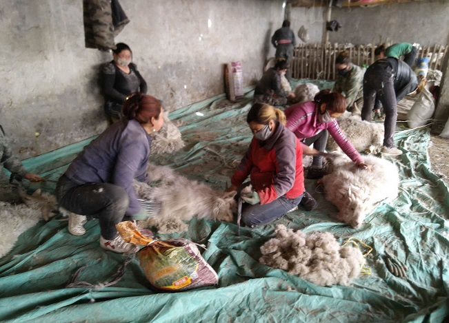 现下,正值剪羊毛季,木扎提村约有10000只绵羊和山羊要换“新装”,为了使更多的牧民投入到剪羊毛队伍中创收,工作队通过网上学习,学会后组织牧民开展了剪羊毛培训,言传身教,同时让村里的剪羊毛能手亲自示范,新手开剪一周,逐渐熟练掌握剪羊毛技巧后,工作队就组织牧民举办剪羊毛活动,以此为牧民鼓鼓劲。