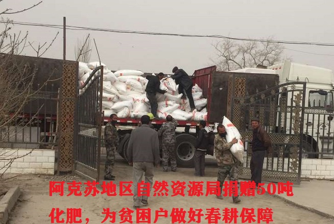 阿克苏地区自然资源局捐赠50吨化肥,约10万余元,为贫困户做好春耕备耕保障。