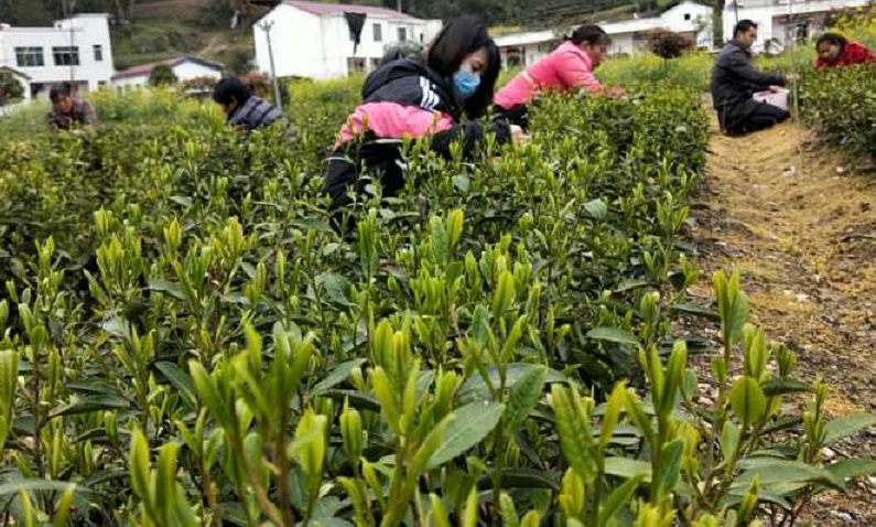 清风网讯(通讯员 李永存 汪盛明 朱建明)春回大地,茶香满园。随着气温逐步回升,3月中下旬来,湖北英山县方家咀乡在指导当地茶叶加工企业做好疫情防控同时,严格按照程序按时复工复产,做到一手抓好疫情防控,一手抓春茶采摘。当前,英山县方家咀乡一垅垅整齐的茶树吐露着春芽,茶农们在茶树间采摘明前茶。据茶农们说,清明节前的黄金茶都是极品,这绿水青山环绕的茶园,为咱农民致富带来希望。近年来,方家咀乡以发展茶叶产业为提升农民富民路,将茶叶产业作为农业主导产业之一重点扶持,鼓励农民发展名优茶种植。提高了村民收入,实现了农村美、农民富。茶产业已成为英山当地农民增收的主导产业之一,托起了村民们的致富梦。