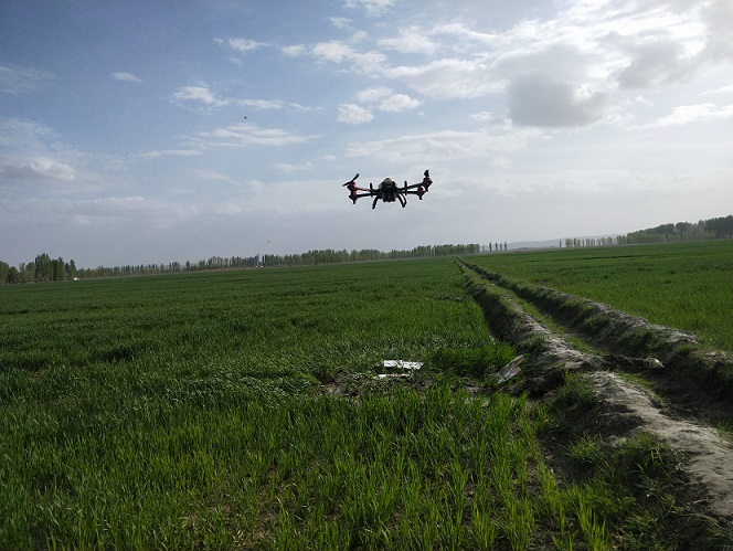 在“访惠聚”工作队的组织下,无人机植保公司在察尔齐镇木扎提村麦地成功进行无人机喷洒农药试验,也是木扎提村首次引进无人机进行喷药作业。