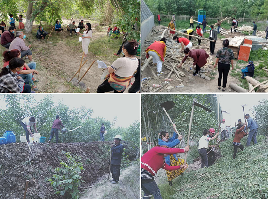 清风网讯(沙雅县人民医院 亢加理) 5月25日,塔勒克村充分利用村“两委”班子、“访惠聚”驻村工作队、乡镇下沉干部力量共20余人,全面带动广大农牧民群众参与到乡村环境大整治行动中来,用自己的双手改造家园,切实提升主人翁意识。通过重点抓好院内院外“六件事”,全面有效提升居民的生活品质。