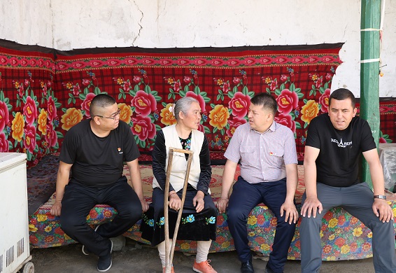 工作队来到老党员达吾提•阿吾提家,感谢他为村子发展作出的贡献,希望老党员多提宝贵意见建议,继续发挥好重要作用。他表示,作为一名老党员,关心村里的建设和发展是自己终身的责任和义务,会继续为村里的发展作出力所能及的贡献。