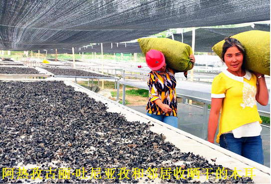 正在翻晒木耳的阿布拉·努尔屯高兴的说“2019年通过种植黑木耳,收入增加了7400多元,在家种植黑木耳不紧不耽误种地和养牛、养羊,还增加了家庭经济收入。目前我家的黑木耳长势良好,预计今年收入能够达到8000元以上。”