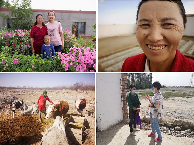 “我是建档立卡贫困户,赶上了党的好政策,这些牛就是我的‘钱袋子’,以前做梦都想着脱贫致富,这多亏了包联单位和村干部的帮扶,让我有了勇气和信心!”今年年初汗扎旦木·阿比地由于发生意外,住进了医院,在她出院回家的当天晚上她家的扶贫牛生下了第二头小牛,汗扎旦木·阿比地高兴的合不拢嘴,激动地说:“昨天夜里新出生的小牛娃让我对致富更有信心了,这也是我出院收到的最好的礼物。”“这几年国家扶贫政策非常好,去年在扶贫干部的帮助下,我还养了50只鸡,卖了三千多元钱,感谢党的好政策,感谢工作队的悉心照顾,让我们家生活条件好起来!”