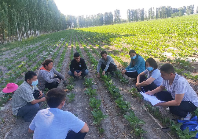 清风网讯(中国人民财产保险股份有限公司阿克苏分公司拜城支公司; 杨经平)连日来,天气炎热,大地一片绿,拜城县察尔齐镇木扎提村处处生机盎然,正值农作物除草施肥最佳时节。6月22日下午,中国人民财产保险股份有限公司阿克苏分公司拜城支公司驻拜城县察尔齐镇木扎提提村第一书记阿力木江·阿布拉带领驻村工作队队员深入田间地头,向村民宣传疫情防控知识,了解农作物的生长情况,指导农作物的管理,确保今年农业生产稳收增收。