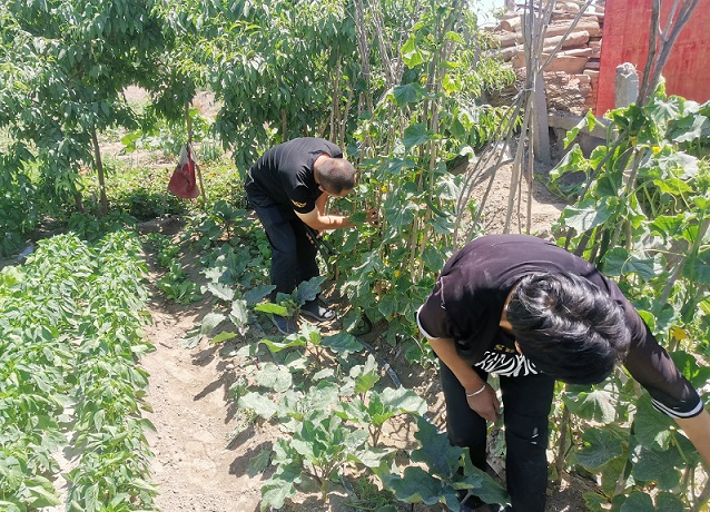 工作队队员张晶在前期走访中了解到张凤兰跟老伴儿俩人在家。年纪大了也没稳定的经济来源,只能靠打零工生活。工作队在走访中了解到他们种菜很有经验的时候,工作队就帮助她们整理房后的菜地,帮助她们扩大种植规模,现在菜地的蔬菜长势良好,可以采摘出售了,工作队还为免费提供电子秤,给他教授使用方法,每到星期天下午,工作队的都来帮忙摘菜装框,利用星期一巴扎天出售菜品。