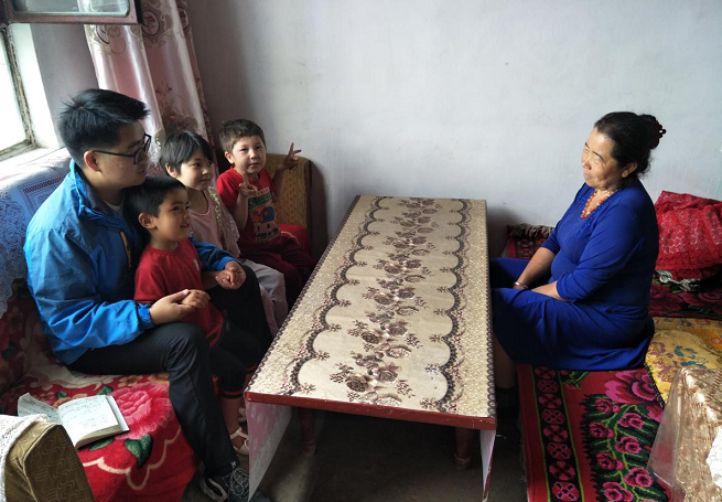 看着孙涛开口询问,肉孜瓦娜木·阿布拉“阿帕”停顿了一会儿,眼含泪花轻声的说:“我……我想自己的2个孙女了,周末我去接她们,她们也不愿意回家。”看着“阿帕”苍老而忧伤的脸庞,孙涛心里感到无比的自责和愧疚,作为第一小队长,他一心关注群众的生产生活困难诉求,却忽略了老人身边无亲人陪伴的失落和寂寞。