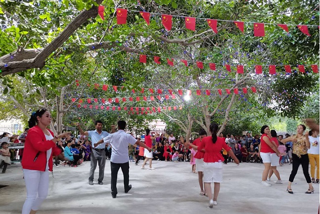 清风网讯(地区自然资源局:艾则孜·巴吾东 )在中国共产党成立99周年之际,新和县尤鲁都斯巴格镇奥依其兰村村民在地区自然资源局出资援建的“初心广场”开展乡村百日广场文化系列活动,组织唱红歌、讲党恩、学习中华传统文明礼节活动,回顾中国共产党99年的光辉历史,组织村民结合自己家里实际情况,深入讲述党的惠民政策和脱贫攻坚战带给人民生活的巨大变化,增强了广大农牧民群众对中国共产党的感恩之情和决胜脱贫攻坚战的信心。