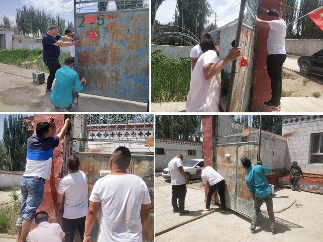 7月10日,阿瓦提县自然资源局的干部阿布拉江·赛买提一行人在走访过程中发现,贫困户古力汗·吐尔迪家大门少了一扇,问了原因才知道,大门早就坏了,家里都是女人和孩子,就没管,反正也没掉。这几天刮大风,没能支撑住,就掉了一扇,老人正在发愁怎么办呢。了解情况后,阿布拉江立即联系电焊工人,并带领着一同走访的干部干起了修大门的活。焊接、搬运、安装,老人眼里的难题在几个大男人的手里变得似乎不那么难了。