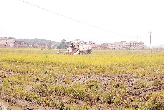新邵陈家坊镇种粮大户抢抓晴好天气收割早稻