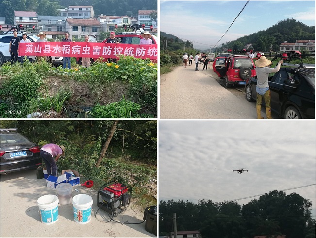 清风网讯(通讯员;李永存 汪盛明 王国平)7月23日,伴随着一阵“嗡嗡”声,3架无人机缓缓低空飞行在湖北英山县方家咀乡佰仲桥村稻田上方。在技术人员的熟练遥控操作下,无人机自如地变换着高度、速度与方向,一边飞行,一边喷药。