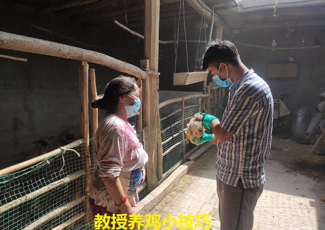 为防患于未然,工作队鼓励实习大学生们充分发挥自己的专业优势,通过走访入户调查,挨家挨户排查,宣传“新城疫”疫情防护知识,尽最大努力提升村民防疫意识,消除村民恐惧心理;积极做好病死鸡的无害化处理、将病鸡和接触过病鸡的可疑鸡分群、为8户贫困户的鸡舍紧急消毒、成鸡注射疫苗;与此同时,实习大学生们还就购买饲料、日常喂养、卫生清理等方面传授了贫困户一些养鸡小技巧,提高成鸡的存活率与出栏率。