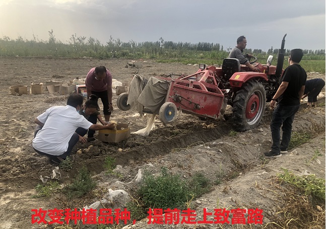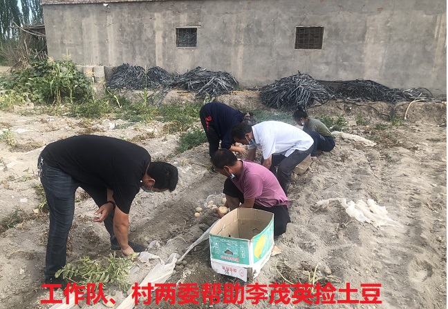 2020年7月20日,是她家土豆开始收获的日子,为了让她家土豆快点回收,早点上市卖个好价格,草场村驻村工作队员联合村两委一起帮助她采收土豆。大家揭地膜的揭地膜、捡土豆的捡土豆、装箱的装箱的,不一会儿就帮他采收了满满一大车。