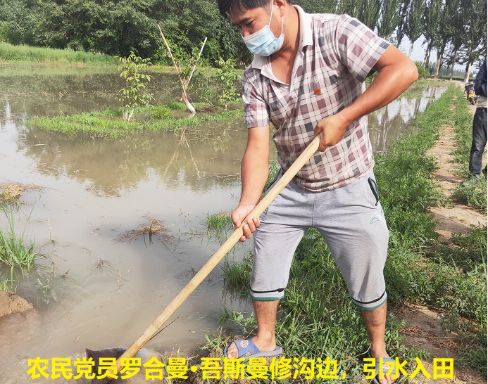 得知这个情况,29日一大早,村里水利合作社的党员干部艾麦尔·阿伍提和罗合曼·吾斯曼组织的“5人帮扶队”第一时间去地里帮村民地里除草、修沟边、引水,浇地。