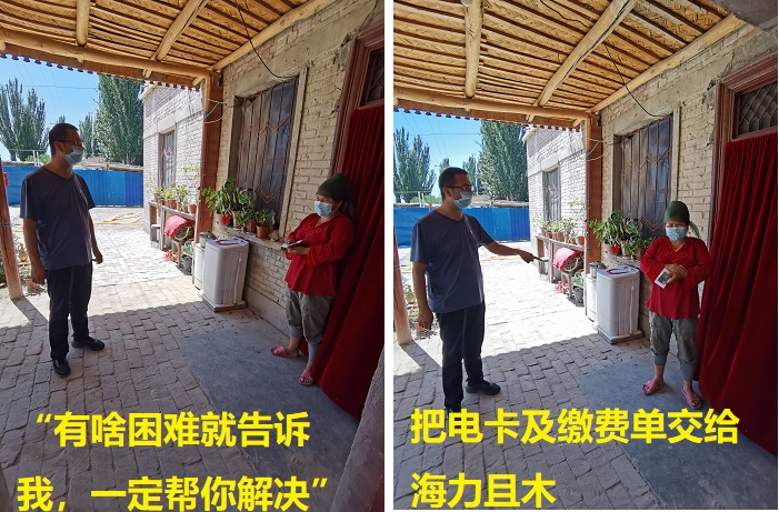 “我家没电了,我们现在出不去,能帮我交一下电费吗?”隔离户海力且木·夏迪窃窃地说。蹲守干部潘新玲听到这个消息,立马接过她手里的钱和电卡,给驻村工作队第一书记打了电话。