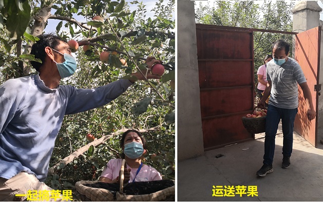 8月,硕果累累,是一个丰收的季节,阿克苏市红旗坡盛产苹果、核桃和红枣远近闻名,林海社区是阿克苏市最偏远的社区之一,群众居住分散出行不便,在疫情防控期间,阿克苏市人大机关驻红旗坡片区林海社区“访惠聚”工作队结合自身的优势,全力保障居民居家生活物资、就医和特殊情况需要出行等方面的需求,均做到了快捷上门服务。眼下辖区部分数果农返回市区或在其他县市居住,由于疫情防控的需要,至今部分果农未返回辖区,苹果、核桃如何采摘、装车、销售成为果农的烦心事。疫情防控刻不容缓,果品收获不容耽误……