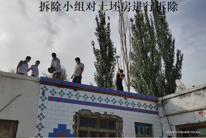 南疆阿克苏地区地处南天山地震带,危旧土坯房十分危险,拆除作为改善人居环境提高村民生活质量的一项重点工作,也是脱贫攻坚工作的一项重要任务。但是由于有些土坯房进行了室外贴砖装修、家中无库房和牲口圈、农民家中人力不足等原因,有一部分村民不愿意拆除。此次通过工作队和村委会干部进行入户宣传,做通思想工作,农户拆除土坯房有村里拆除小组的协助,大家都积极甩开膀子干了起来。