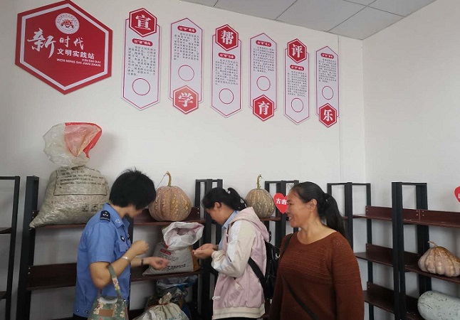 大甸镇“善星小集”新时代文明实践志愿服务站实行店长值班制和积分管理制度,激发志愿者开展“爱心采购”等志愿服务活动的积极性,有效解决贫困户农产品滞销问题。同时,大甸镇党委政府还加大产销对接力度,通过开展电商营销、农超对接、旅游带动等手段拓展销售渠道,提升贫困户发展产业勤劳致富的信心,持续巩固脱贫攻坚成效。大甸镇党委政府将以开展消费扶贫月活动为契机,充分发挥后盾单位帮扶作用,进一步加大消费扶贫力度,最大限度帮助建档立卡贫困户增加收入。