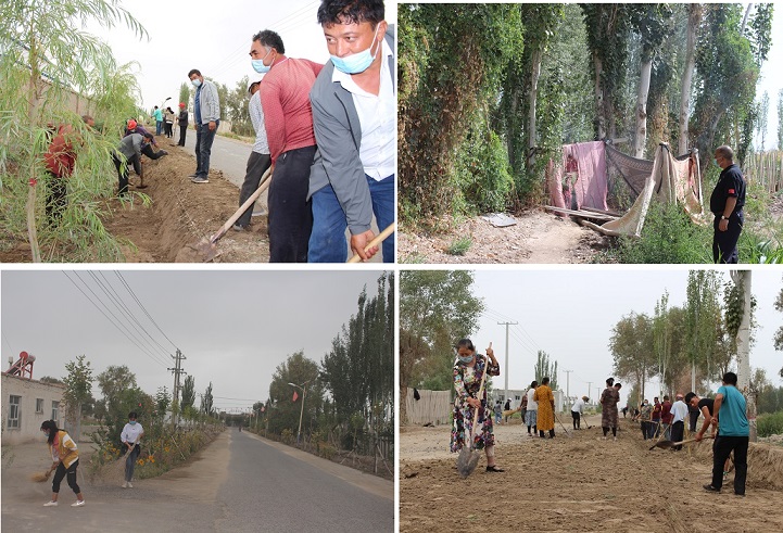 近日,新疆新冠疫情得到控制,社会秩序按下“播放键”,阿瓦提县爱国卫生运动如火如荼进行着,团结新村也不甘落后。在村两委、工作队的组织号召下,团结新村的党员干部、志愿者、群众带着铁钎、扫把等清扫工具纷纷活跃在村头巷尾,深入开展爱国卫生运动。