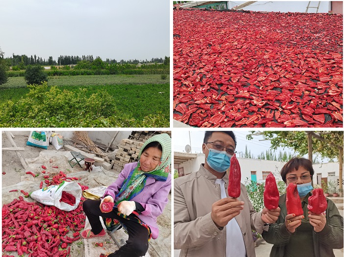 党支部书记阿依夏木·尼亚孜介绍说:“塔勒克村地处新疆南部塔哈拉玛干沙漠边缘,其特殊的地质和光照条件,这里生长的色素辣椒色泽鲜艳纯正、红色素含量高、个大肉厚、筋辣肉甜、口感微辣到中辣、产量高,还具有独特的香辣味,是制作干辣椒、辣椒酱、加工红色素的上好原料。”