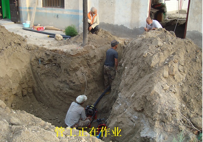 经过前期工程人员与村干部细致的实地踏勘,初步定好了管线布设路径,工程顺利破土动工,为了尽量不破坏原有水泥路面和农户院中的水泥地面,管线多以土路基沿线或是农户居民点菜地沿线布设,最大程度的减少对村内原有路面和农户院中的水泥地面的破坏。