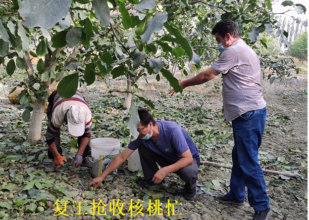 “现在疫情防控常态化,重点还是要做好秋收农业生产,我们将在做好疫情防控的基础上,有序组织复工复产,抢收香梨、核桃等,成熟一个品种,收获一个品种,确保农民都劳有所获。”工作队第一书记木塔里甫·阿不都肉苏力说。