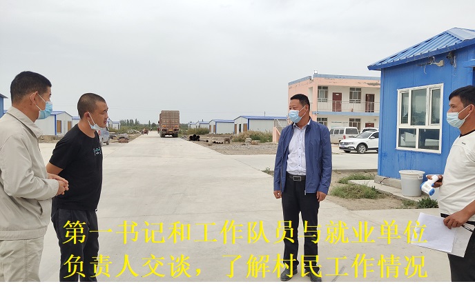 第一书记、工作队长钟利民向项目部负责人了解村民在工地务工的情况和工资发放的情况。项目部负责人表示:工作队介绍来的村民都很踏实肯干,工作表现很好。开工程车的阿米尔现在每月能收入4500元钱。钟利民说:通过这种形式,既解决了企业的用工困难,也使村民能就近找到合适的工作,进一步拓宽广大群众的致富门路,使他们的腰包能够鼓起来,把日子越过越好,这是双赢多赢共赢的好事。