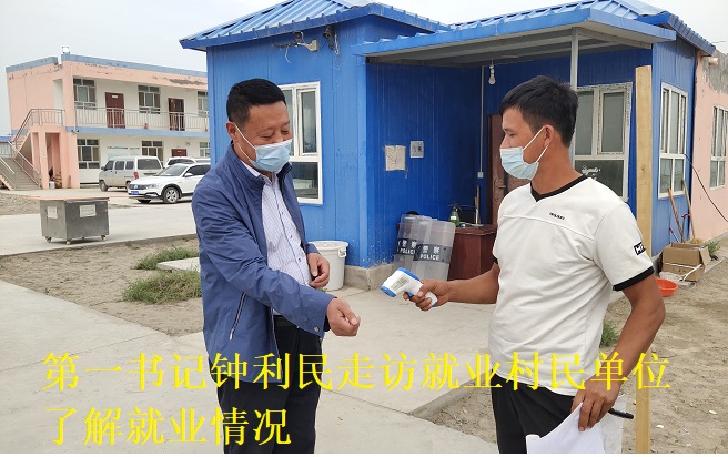 第一书记、工作队长钟利民带领工作队员去项目工地了解村民务工情况时,保安艾麦尔高兴地打招呼,熟练地给工作队员进行登记、测体温。他说:“钟书记,你们给我介绍了保安的工作,我现在每月有2500元工资,我一定好好干!”