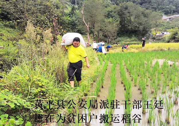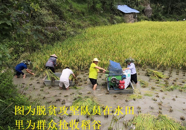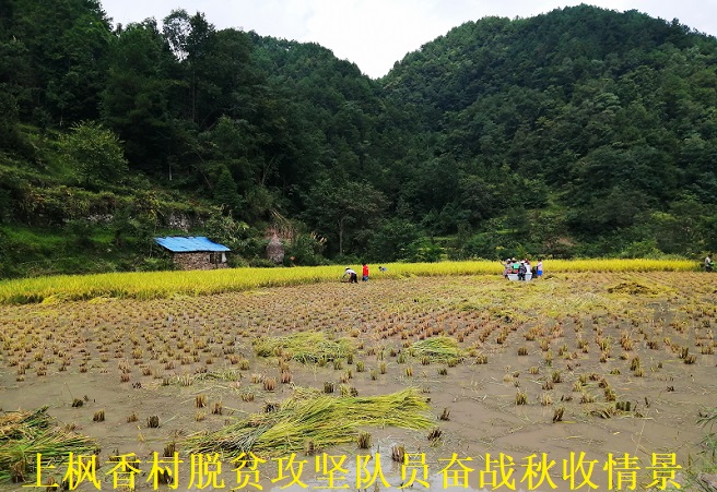 没有彩旗飘飘,没有横幅招展。这些脱贫攻坚队员们每天都在默默地为基层秋收工作奔忙着。雨天,他们打着雨伞揪心地行进在田间地头,查看群众的稻谷是否被连续多天来雨水浸坏;晴时,大伙在一边动员群众抢收抢晒时,又忙于为缺乏劳力的贫困户收割、搬运稻谷,全体驻村干部在金秋的田野上忙得不亦乐乎。据介绍,上枫香寨这支脱贫攻坚干部从今年9月份以来,他们先后派出60多人次,共为群众抢收稻谷10余次,收回谷物3万多公斤。他们以全心全意为人民服务的工作作风,赢得了广大群众的称赞。采访中,村里的网格员王廷雄告诉笔者:“虽然我们没有力挽狂澜的能力,没有什么豪言壮语,没有想要群众的什么口碑,但只要大家在力所能及中为群众做点事,就是苦点累点也应该。”“我们在为群众干活时,并不是蜻蜓点水来做秀,而是要深踩田泥打入斗,吹散谷叶找到家!”他看了看手机天气预报后,对同仁们说:9月23日不下雨了,我们要赶在这一天分头去为那些没有劳力的留守老人抢收,哪怕能抢回一挑两挑也值!