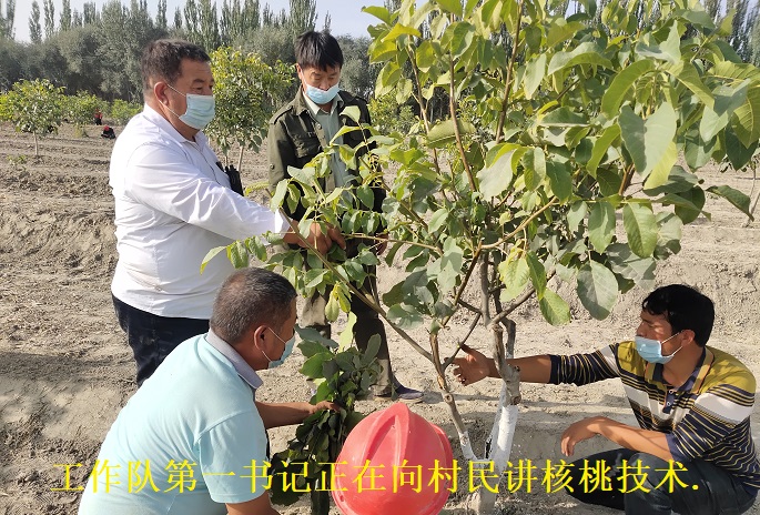 2020年9月22日,阿瓦提县水利局驻英艾日克镇吐格曼贝希村访惠聚工作队带领村民一起进行核桃田间管理,为村民讲解了核桃田间管理技术。